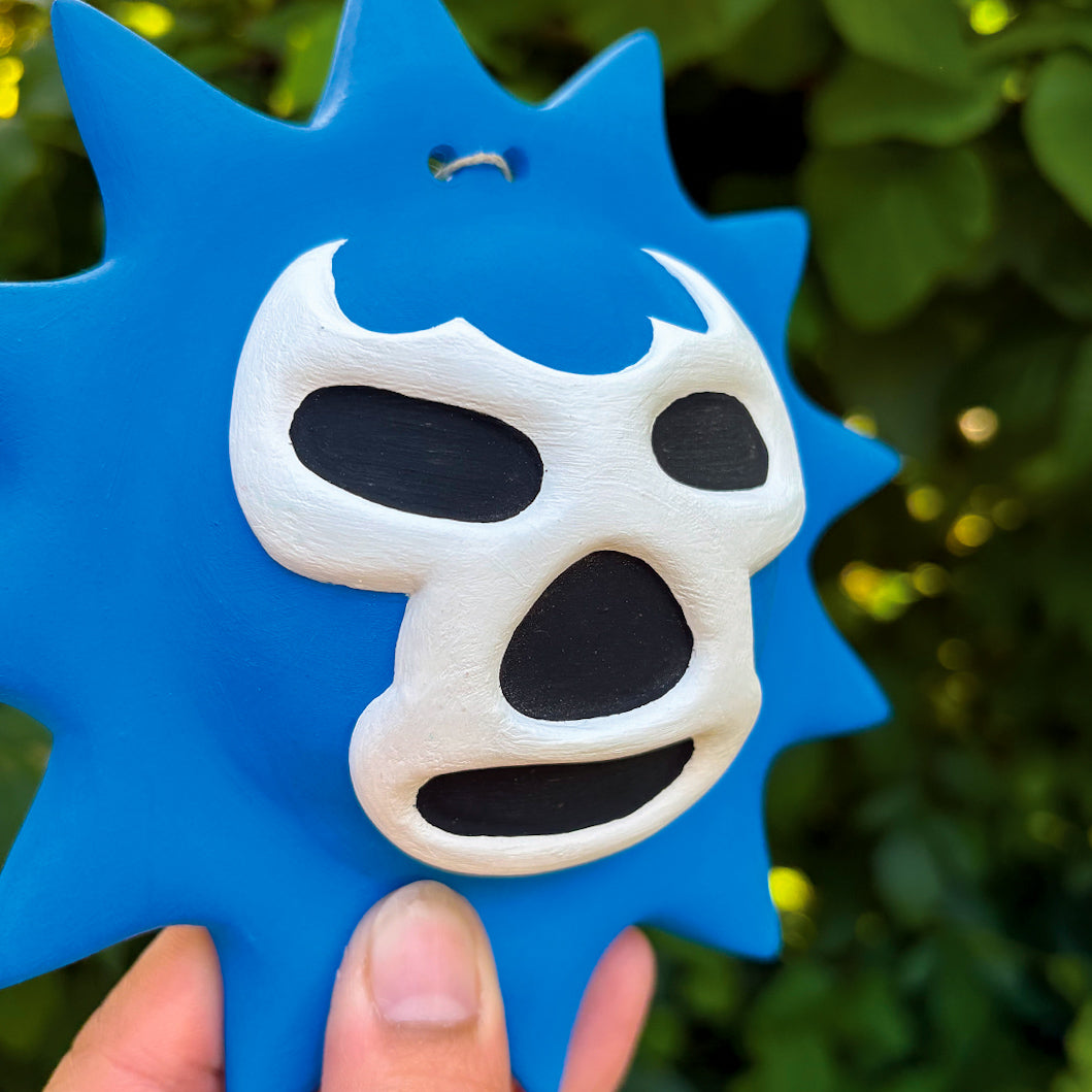 Painted Blue Demon Lucha Solecito Wall Hanging