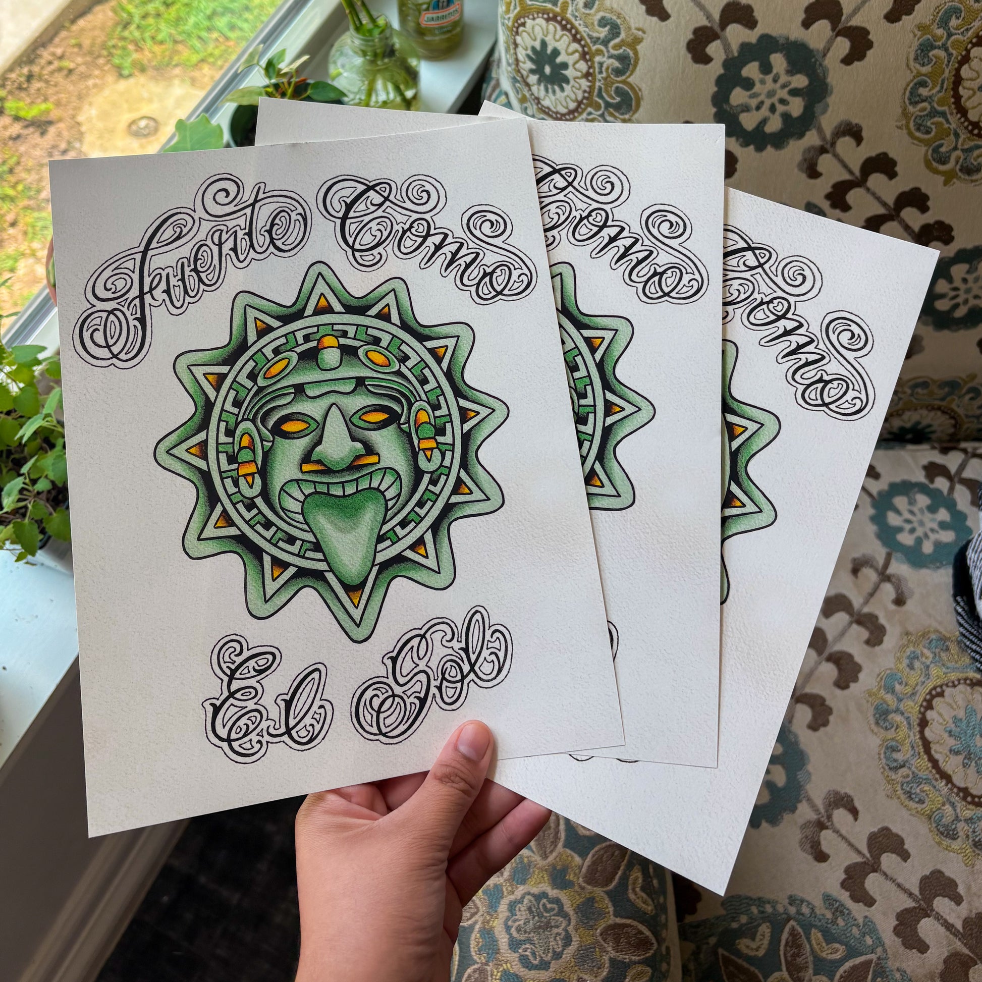 This bold art print features Tonatiuh, the Aztec sun god, reimagined from our original Tonatiuh Solecito ceramic piece. Inspired by the strength and symbolism of the sun in Mexica tradition, this solecito radiates energy, resilience, and warmth.