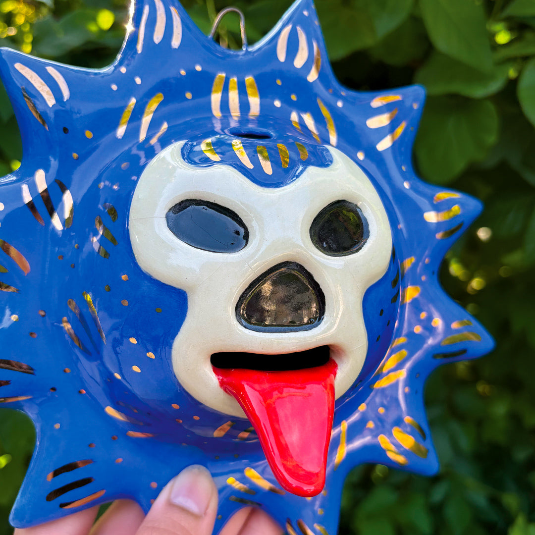 Golden Blue Demon Lucha Solecito Wall Hanging [Incense Holder/Burner]